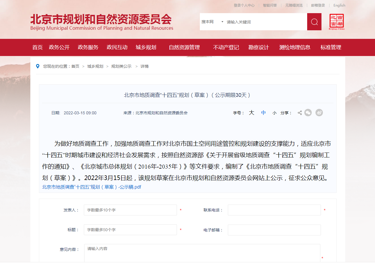 地大熱能地?zé)?多能互補網(wǎng)訊:《北京市地質(zhì)調(diào)查“十四五”規(guī)劃(2021—2025年)(草案)》(以下簡稱《草案》)3月15日起在市規(guī)劃自然資源委網(wǎng)站公示,聽取公眾意見,公示期30天。《規(guī)劃》提出,北京市將率先對首都功能核心區(qū)地?zé)崮?/a>等開展綜合地質(zhì)調(diào)查評價,提供地質(zhì)安全保障。社會公眾對該《規(guī)劃》如有意見建議,可在4月14日前登錄北京市規(guī)劃自然資源委網(wǎng)站留言。
