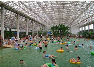 江蘇省洪澤縣老子山溫泉風景 溫泉陽光浴場展示出亮麗的南國風情,分布大型泳池和品類各異的水療、魚療、花藥浴、泥巴浴,不僅具有神奇的理療保健作用,還兼備排毒養顏、美白肌膚、調理身心等多重功效,享有蘇北熱海、澤國仙境、華東首席溫泉度假區之美譽。