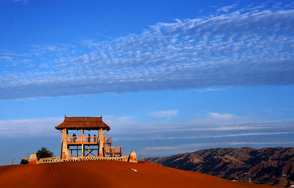 特殊的地理環(huán)境孕育了豐富的旅游資源,在這里,可以看到極具歷史積淀意義的4公里長(zhǎng)的明代古長(zhǎng)城遺址的宏偉景觀;可以站在湖畔觀賞著多達(dá)15種的沙漠生態(tài)魚和136種鳥(niǎo)類,其中黑鸛、大天鵝、金雕分別屬于國(guó)家一、二級(jí)保護(hù)動(dòng)物;可以在水上樂(lè)園與湖水親近;可以在遼闊的沙漠草原中縱情馳騁、在金沙島紫色的花海中徜徉;可以在永安寺里尋找片刻的寧?kù)o,在五彩池畔與荷花仙子心靈神匯。騰格里湖沙漠濕地旅游區(qū)溫泉猶如沙漠里的藍(lán)色水晶,如詩(shī)如畫的旖旎風(fēng)光,看著格外悅目。